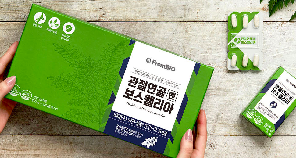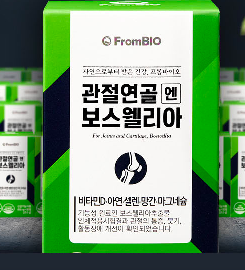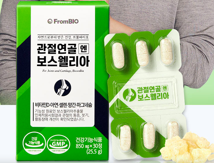 다음은 작년 관절 영양제 중 가장 인기가 많았던 보스웰리아 입니다. 프롬바이오 제품으로 프롬바이오에서 가장 매출이 잘 나가는 건강기능식품으로 관절 영양에 매우 좋은 보스웰리아를 그대로 담은 영양제 입니다. 보스웰리아는 인도의 고산 지대에서 자생하는 나무로 2년 동안 나무 하 그루에서 400~500g의 극 소량만 채취할 수 있는 원료입니다.