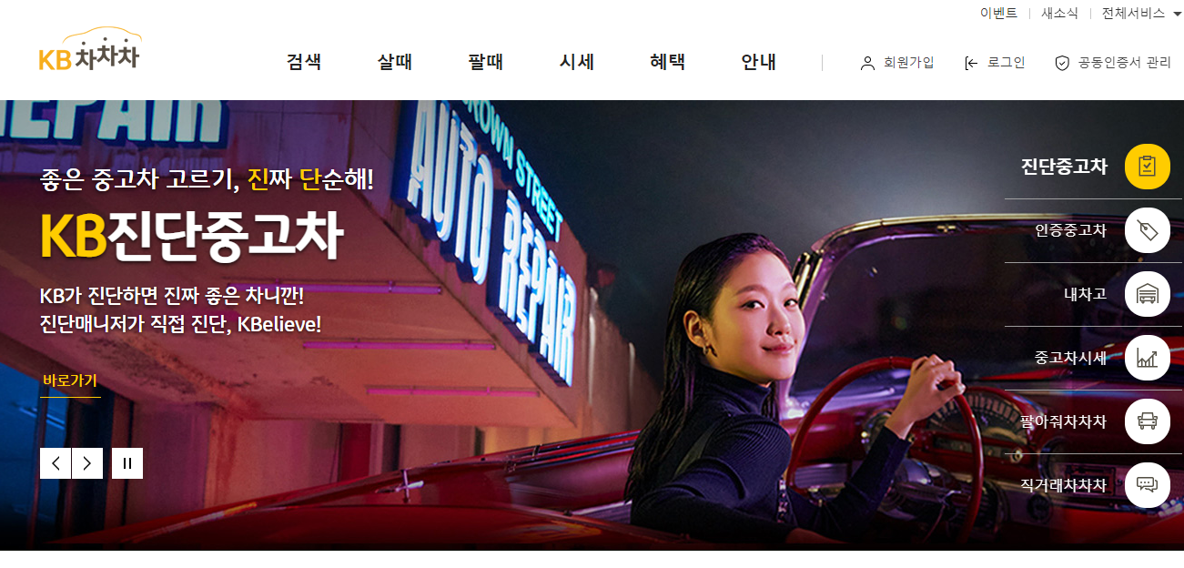 KB차차차는 중고 등록매물의 80% 이상이 실소유주와 직거래하는 실거래 매물로 가격 네고가 충분히 가능하며, 엔카와 마찬가지로 KB진단이라는 제도를 통해 KB차차차 직원이 직접 차량의 사고 유무 및 차량 상태 등을 파악해주고 있습니다.