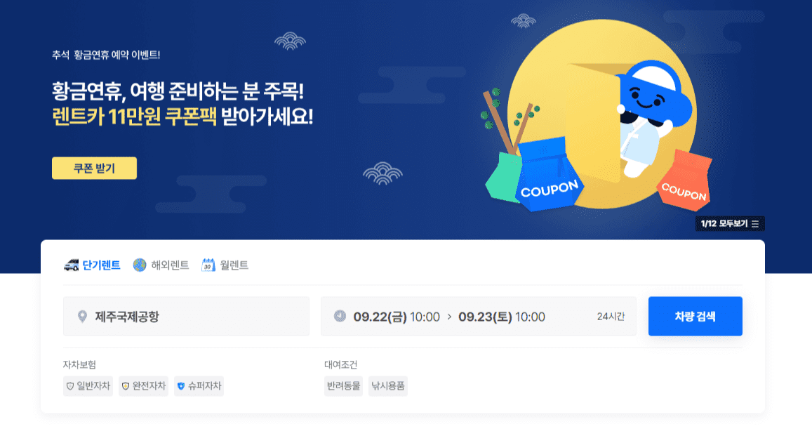 다음으로 소개드릴 사이트는 너무 유명한 사이트죠. 롯데 렌터카입니다.