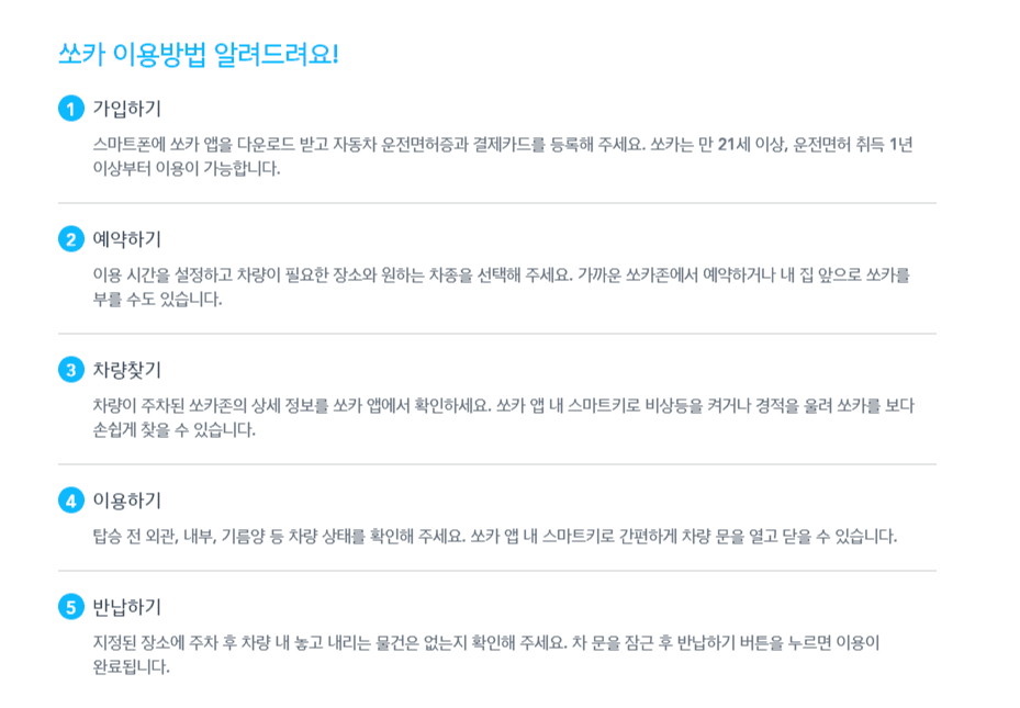 지역마다 쏘카존이 있어 가장 가까운 쏘카존에서 차량 대여를 예약하고 그 시간에 방문해서 차량을 렌트하는 식입니다. 평소에 드라이브를 가고 싶을 때 잠깐 예약해서 근교 갈 때나 일이 있어 먼 곳을 방문해야 할 때 너무 편하더라고요.